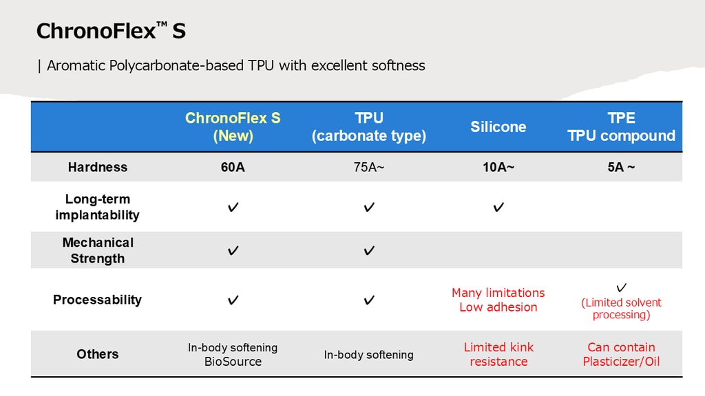 医療機器向けエラストマー材料選定ガイド─新規柔軟TPU:ChronoFlex™ S