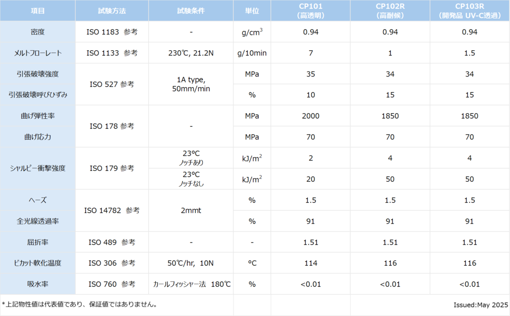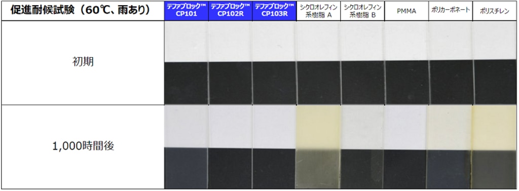 耐候性に優れ黄変しにくいため、長期に透明性が求められる用途に適用可能です。